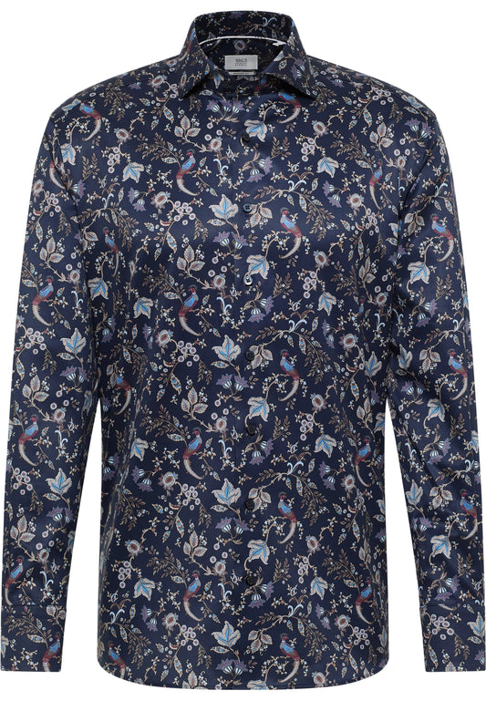 ETERNA Printed Floral Twill Shirt - DARK BLUE