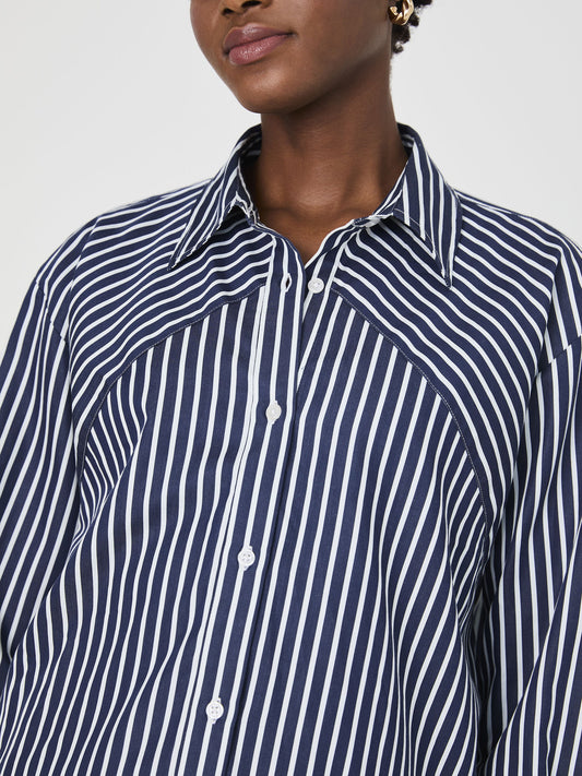 French Connection Alexis Cotton Angled Yoke Striped Shirt - MARINE/SUMMER WHITE