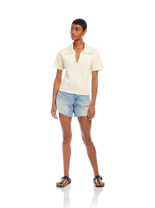 Fifteen Twenty Evie Knit Polo Top - CREAM