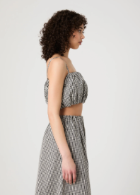 Tiny volume. The Gingham Crop Top is made from structured cotton gingham and features a bubble silhouette with adjustable straps and an elastic hem. This bralette pairs perfectly with the matching Gingham Ruched Waist Midi Skirt—but looks just as cute with your favorite high-rise denim.