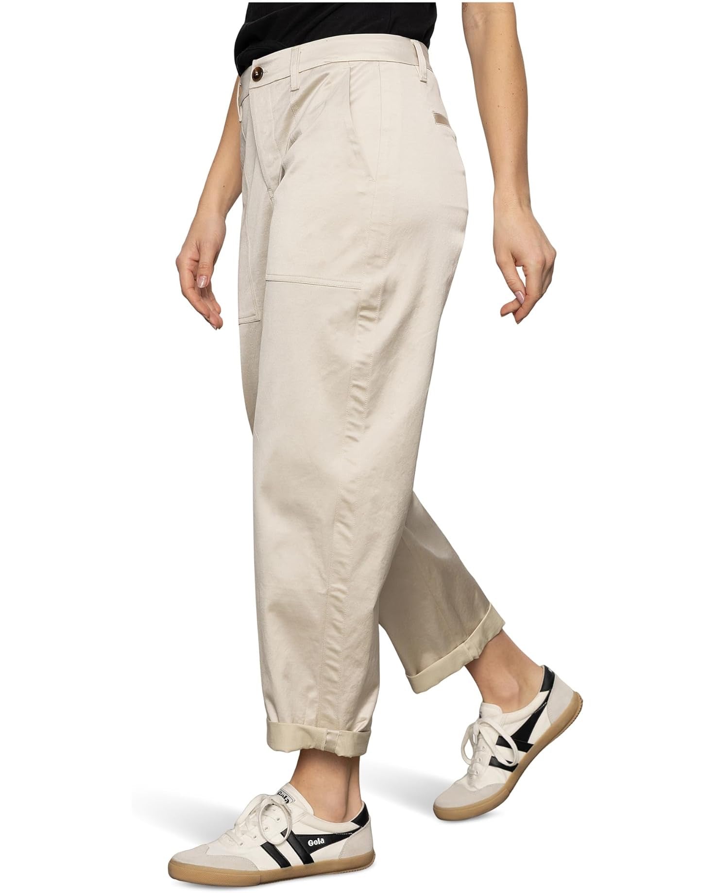 The Sanctuary™ Sateen Tapered Pants offer a refined, utility-inspired silhouette with everyday versatility. They feature a mid-rise waist, tapered leg, and front seam detailing for a tailored finish. With a cropped silhouette, ankle pleat accents, and a relaxed fit, these pants balance structure and ease, making them ideal for both casual and polished looks.